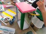 はね車を作りました。 しかけを考え、はねを作りくぎを打って、しかけを完成させます...