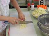調理実習の様子です。 野菜を切り、茹でています。みんなで分担して実習を行っていま...
