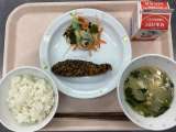 今日の給食は、麦ごはん、牛乳、魚のごまフライ、野菜の和風ドレッシング、みそ汁です...