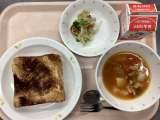 今日の給食は、ティラミストースト、牛乳、ミネストローネ、野菜のイタリアンドレッシ...