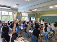 国語の時間。楽しい時を表現するとき、表情、言葉、行動、手話、日記、絵などに表した...