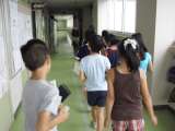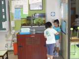 1年生の教室では、朝の会の前に・・・係活動“金魚に餌をあげる”・・・提出物を先...
