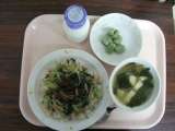 今日の給食は、 ビビンバ 牛乳 わかめスープ そら豆 です。 ≪食材の産地≫ し...