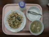 今日の給食は、 ひよこ豆のまぜごはん 牛乳 豚汁 焼きししゃも です。 ≪食材の...
