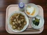 今日の給食は、 麻婆豆腐焼きそば 牛乳 中華風きゅうり フルーツヨーグルト です...