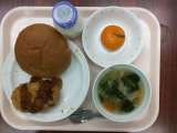 今日の給食は、 丸パン 牛乳 ビーンズコロッケ 野菜スープ くだもの です。 ≪...