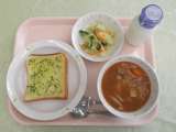【献立】 ガーリックトースト 牛乳 トマトシチュー ...