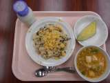 【献立】 カレーピラフ 牛乳 キャベツスープ 大...