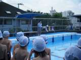 今日は3・4年生のプール開きでした。クラスの代表の子が水泳のめあての話をしたり...