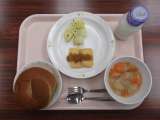 【献立】 黒ざとうパン 牛乳 トマトスープ いかのマ...