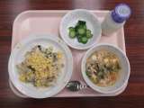 【献立】 青菜のチャーハン 牛乳 麻婆汁 きゅうりの...