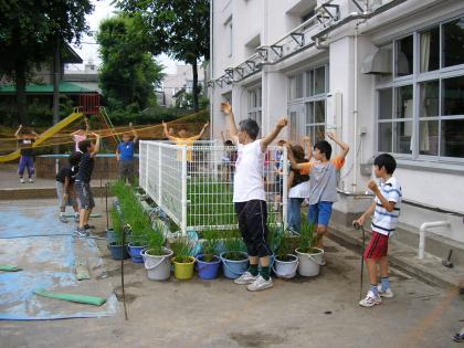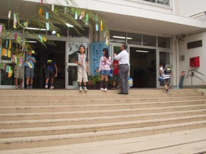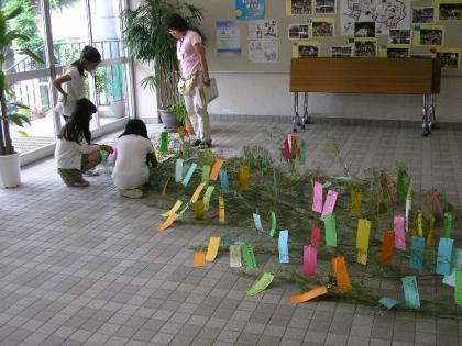 九品仏小学校の玄関には、大きな竹に全校児童の夢や希望、そして、願いを短冊に書い...