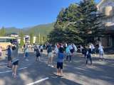 バスが到着し、学校に到着しました。