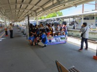 羽生パーキングエリアでトイレ休憩です。林間学校の小学生がたくさんいます。道路は順...