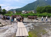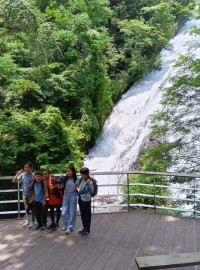 湯滝で記念写真を撮ったあと、ハイキングに出かけました。森の中は涼しく虫の声や鳥の...