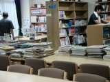 新学期に間に合うように、世田谷区教育委員会の施設課の方々が図書室の壁の塗り替え...