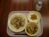 今日の給食は、ひじきごはん 牛乳 吉野汁 ぶどう豆 です。 ≪食材の産地≫ にん...