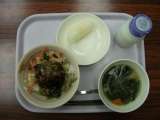 今日の給食は、韓国風鶏つくね丼 牛乳 わかめスープ くだもの です。 ≪食材の産...
