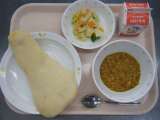 今日の給食は、ナン、牛乳、キーマカレー、ポテト入りフレンチサラダです。 《食材...