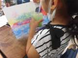 絵の具の入ったコップに、ストローで息を吹いてブクブクブク。 絵の具の泡を画用紙に...