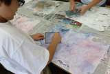 図画工作科の『凸凹キャンバス』では、大きな紙に、自分がイメージした形を取り付け、...