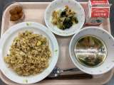 今日の給食は、チャーハン、牛乳、もやしのコチュジャンがけ、ワンタンスープです。 ...
