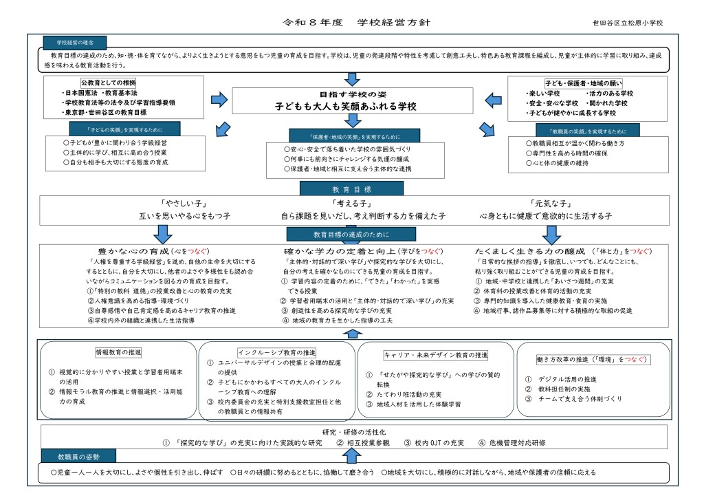 子どもたちが安心して過ごし、自分の思いを大切にしながら成長できること、そして学校に関わるすべての人が、温かい気持ちになれる学校を目指しています。