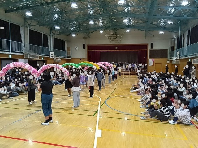 今日は、全校児童が体育館に集まって、1年生をむかえる会をしました。入学してから約2週間がたちました。1年生は、嬉しい顔、ちょっと恥ずかしそうな顔をしながら花のアーチをくぐりました。児童代表のことば、○✖クイズなどを行いました。最後は、また花のアーチをくぐって、にこやかな表情がたくさん見られて、退場しました。
