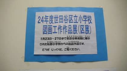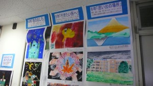 現在、区展に出品された作品が図工室前に展示されています。