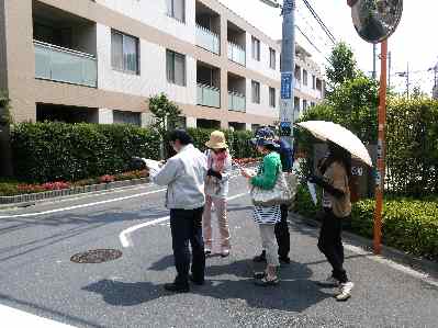 北沢警察署交通課交通規制係、北沢土木管理事務所の方々と本校校外子供会担当、校外交通担当の保護者の方々と副校長で、本校保護者の皆様から寄せられた声を基に通学路安全点検を行いました。この点検は、年に1回行っています。対策必要箇所については、関係機関に改善を依頼しました。