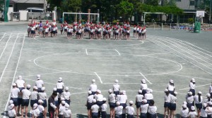 今日は、はじめての合同練習で、騎馬の組み方や動きを