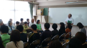 引き取り訓練に引き続き、避難所運営委員の方々と、松原小学校の教職員とで、児童の安全の確保と地域防災に関する意見交換を行いました。