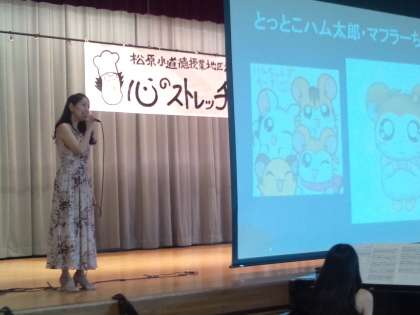 講演会には、佐久間レイさん(声優・歌手・脚本家)と佐田詠夢さん(ピアニスト・さだまさしさんのお嬢さん)においでいただき、素敵な歌や語りを交えてご講演いただきました。