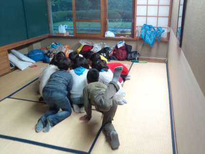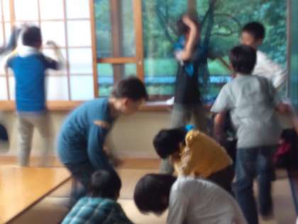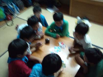 小雨ふり、ナイトハイクは中止になりました。そのかわり、室内レクをしました。