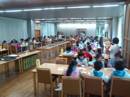 目覚めると友だちが隣りにいる・・。楽しいおしゃべりをしながらの食事・・。子どもたちは、朝からニコニコ嬉しそうです。