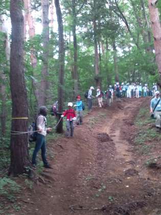 ここからは下り坂ですが、最大の難所があります。ロープにつかまって坂をおります。
