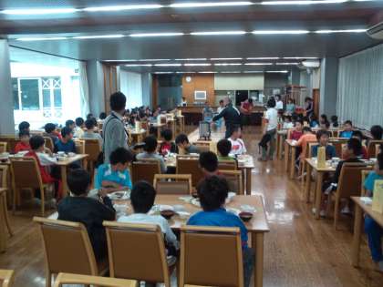 2日目の夕食は食堂でいただきます。
