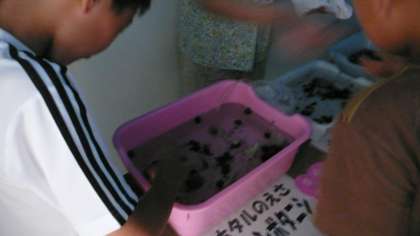 クラスごとに観賞をしていき、ホタルを育てている小林さんにホタルに