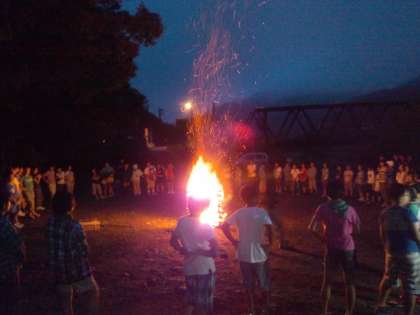 日光の夜空を焦がす火を囲み、ゲームにダンス、6年生の団結力が高まっていきます。