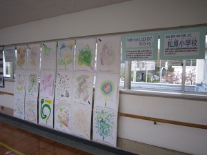 校内展示の中に交流校の代表として、松原小学校4年生の絵画と書写が