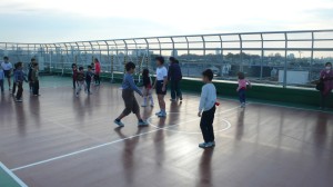 ドッジボール、しっぽとり、じゃんけん列車など各班6年生が中心となり、それぞれの班で遊びを楽しんでいました。(安齋)