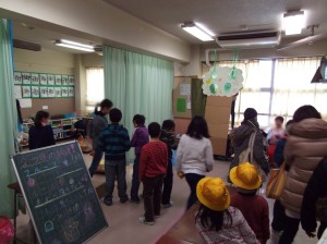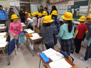 1年生は初めての参加。みんな昨日から楽しみにしていたようです。友達とペアになって、いっしょに教室を回ります。2人で相談しながら、お兄さん、お姉さんにやさしく案内されて、みんなとてもうれしそうでした。(杉本)