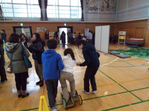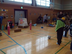 体育館では、6年生が『挑戦しよう!松原五輪』、『アドベンチャーズ〜秘境への入口』と題して、いろいろなアトラクションを催していました。案内も慣れたもので、たくさんのお客さんや子どもたちを上手に誘導し、もてなしていました。(杉本)