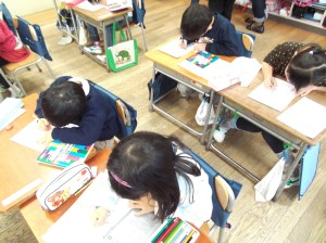 松原子ども会に初めて参加した1年生は、各教室に戻ってふり返りをしました。楽しかったこと、よかったことなどを発表し、参観してくれたお父さん、お母さんにも伝えることができました。カードに書いてまとめることもできました。来年は2年生として、新しい1年生を上手にもてなす姿が見られるのでしょうね。(杉本)