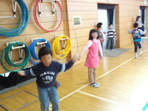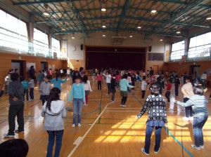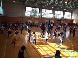 今日からなわとび週間が始まりました。残念ながら雪のため校庭が使えないので、体育館で2学年ごとに行いました。初日の今日は、2年生と5年生。体育館いっぱいに広がって、それぞれの練習しました。(杉本)