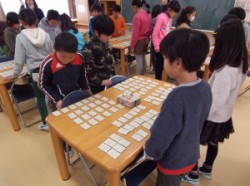 4年生は、教科「日本語」の時間にゲストティーチャーをお迎えし、百人一首に取り組みました。詠み手のゲストティーチャーの方の声に耳を傾け、どの子も真剣な表情で集中して取り組んでいました。(安齋)