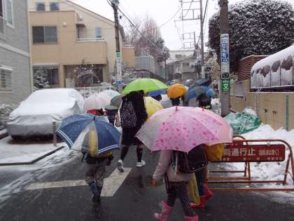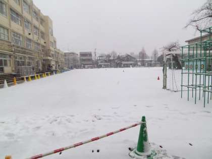 未明から雪で、松原小学校の校庭は再び真っ白になりました。今朝の登校時の子どもたちは、道路に積り始めた雪を見ながら、少しうつむき加減で歩いているので、転ばないか心配になります。インフルエンザも流行っています。寒くても、手洗いとうがい、それに防寒対策も忘れずに。(杉本)