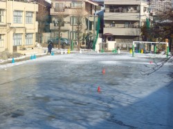 今日は、週末の雪がまだ残っており、登校時間は冷えて道もつるつるの状態でした。