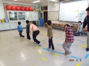 この日は、ともだち教室でも2人の教員が研究授業を行いました。体育の授業ではありませんが、身体を使った活動を中心に、子どもたちの運動機能を高める指導を行っていますした。ともだち教室の子どもたちも、自分の身体イメージが持てるように、毎回与えられた課題に楽しく取り組んでいます。身体を動かすことが嫌いにならないようにするためにはどうすればいいか、ともだち教室の教員も、講師の先生から指導を受けました。