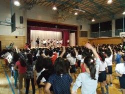 「恋するフォーチュンクッキー」の曲に合わせて全校でダンスの練習をしました。